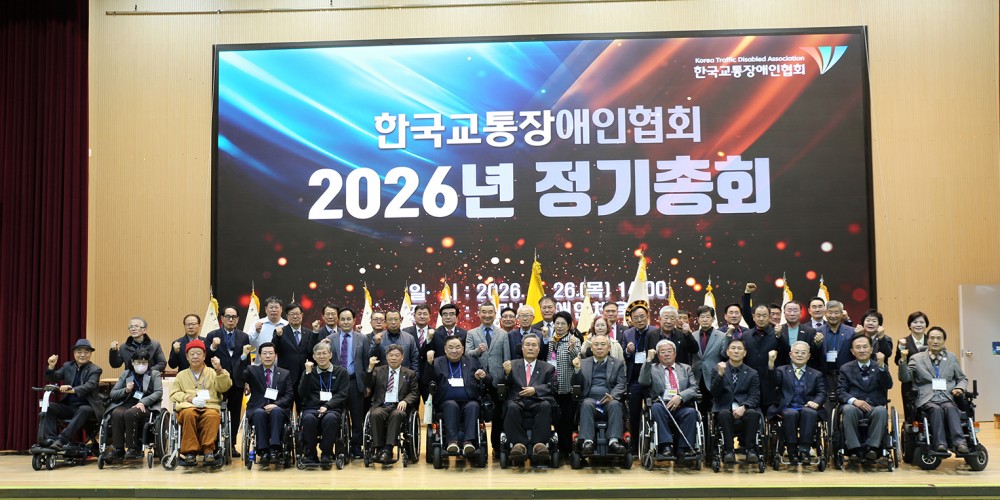 (사)한국교통장애인협회,2026년‘한국교통장애인협회 시무식’성료 (사)한국교통장애인협회(중앙회장 김락환)는 지난 15일 구미시장애인체육관에서 2026년 병오년 새해를 맞아 시무식을 열고, 전국 시·도협회 및 시·군·구지회 임직원과 회원들이 한자리에 모여 새해 각오를 다지는 뜻깊은 시간을 가졌다. 이날 행사에는 시·도협회장과 지회장을 비롯한 임직원, 회원 등 300여 명이 참석해 성황을 이뤘으며, 백성희 사무총장의 사회로 구미시장애인종합복지관 직원들의 식전 댄스
